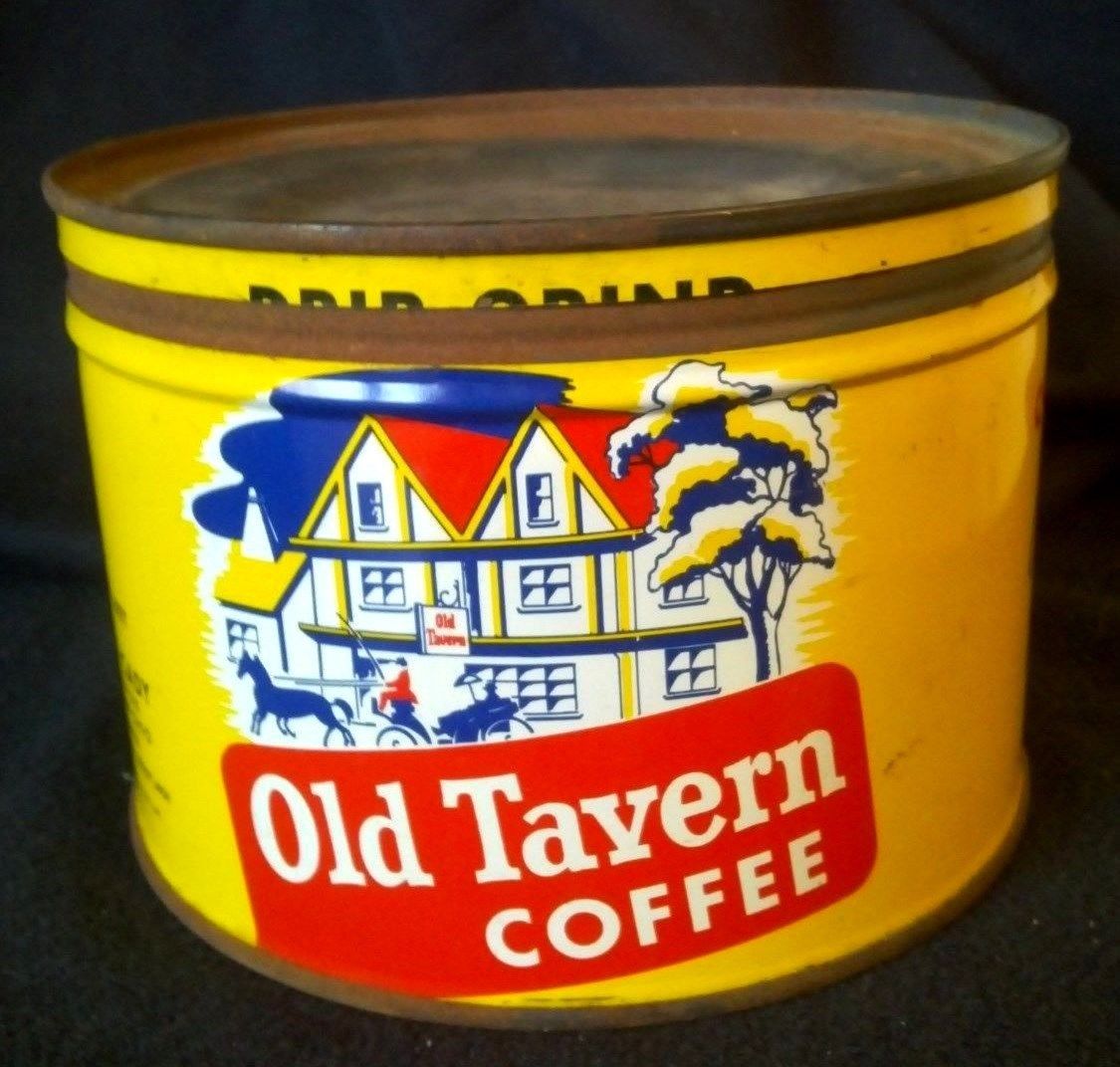 Title (ebay affiliate link): ANTIQUE VINTAGE OLD TAVERN KEYWIND COFFEE TIN CAN WITH TOP LID CARRIAGE KITCHEN