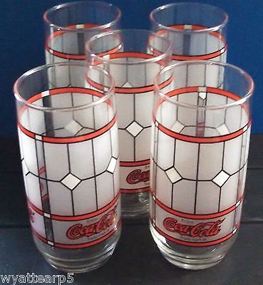 Title (ebay affiliate link): Set of 5 Vintage Enjoy Coca Cola Red Stained Tiffany Drinking Glasses Glass