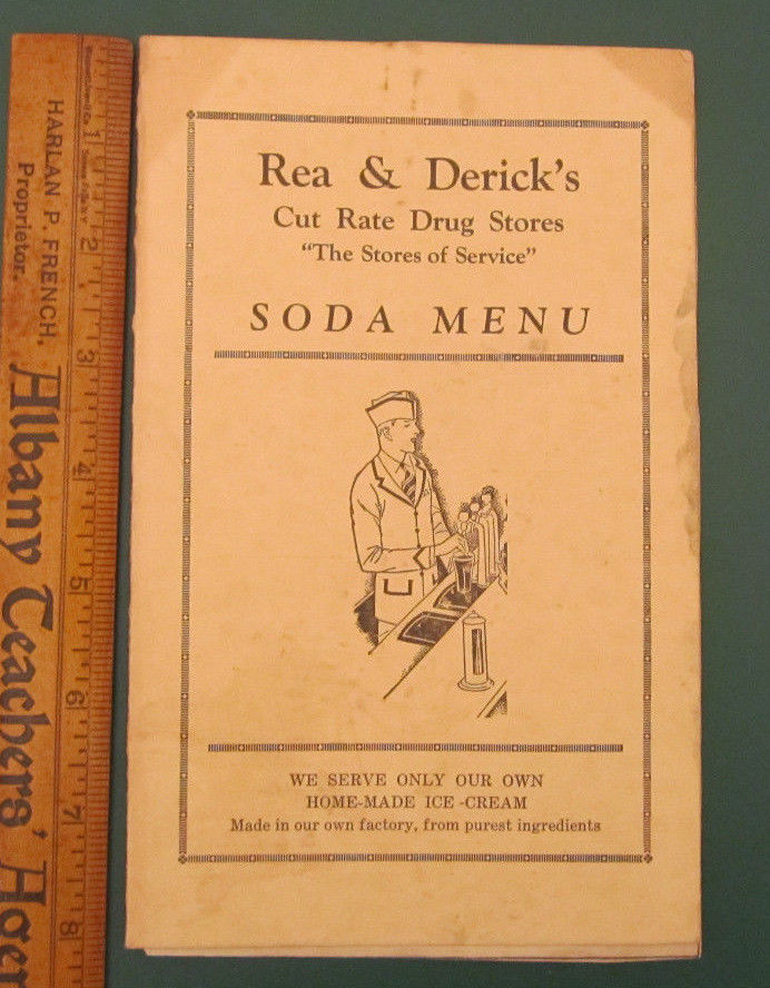 Vtg 1930s Rea & Derick Drug Store Soda Fountain Menu 5 cent Coca Cola