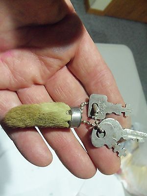 Title (ebay affiliate link): junk drawer Vintage Rabbits Foot Lucky Charm with chain w/ 3 old keys Long Lock