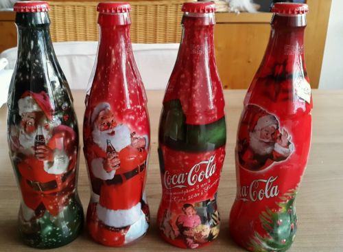 Very nice coca cola christmas set from sweden. 4 full wrapped bottles