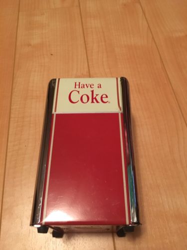 Title (ebay affiliate link): 1992 COCA-COLA METAL NAPKIN DISPENSER HAVE A COKE RED & WHITE