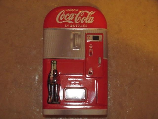 Title (ebay affiliate link): Collectible Coca-Cola Coke Vending Machine "Drink Coca-Cola In Bottles" Tin Can
