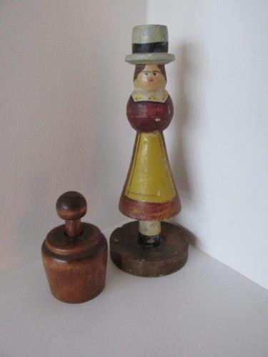 Primitive Wood ACORN BUTTER PRESS MOLD and WOOD MAID FIGURAL CANDLEHOLDER