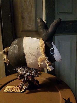 Primitive Grungy Dutch Bunny Rabbit Rusty bell on Candle stick Easter Ornies