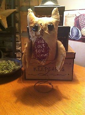 PRIMITIVE VALENTINES DAY OWL ORNIE SHELF SITTER DECOR #2