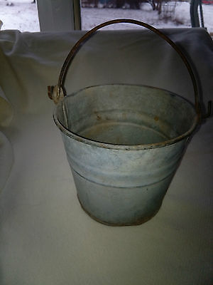 OLD PRIMITIVE COUNTRY FARM EGG BUCKET TIN SWING HANDLE SMALL GALVANIZED METAL