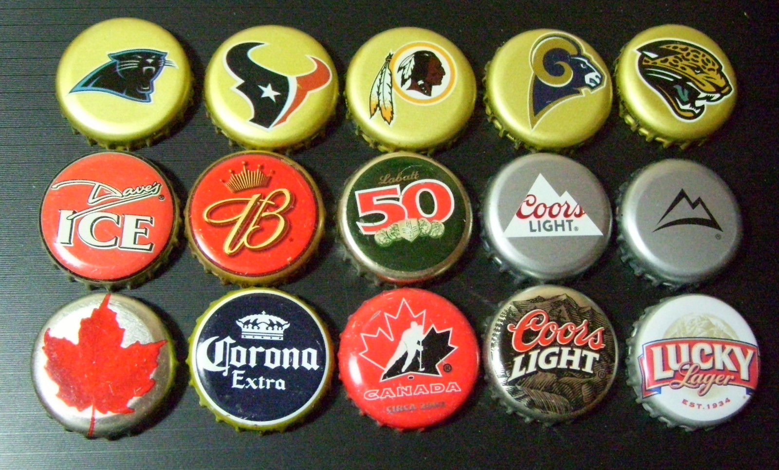 Title (ebay affiliate link): 15 Bottle Caps - Beer - Soda - NFL - Dave''s ICE - Lucky - Corona - Coors # 2