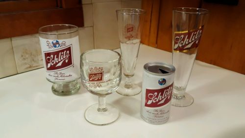 Schlitz beer glass collection with can