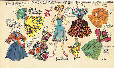 Title (ebay affiliate link): 1950''S NEWSPAPER PAPER DOLL MINA FROM AUGUST 6, 1952 BY LUCY ELEANOR LEARY