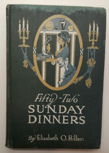 Title (ebay affiliate link): Antique Cookbook Fifty-Two Sunday Dinners Elizabeth O. Hiller 1915