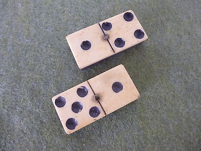 Antique Civil War Era Bone & Ebony Dominoes, X2, Great Camp Item!