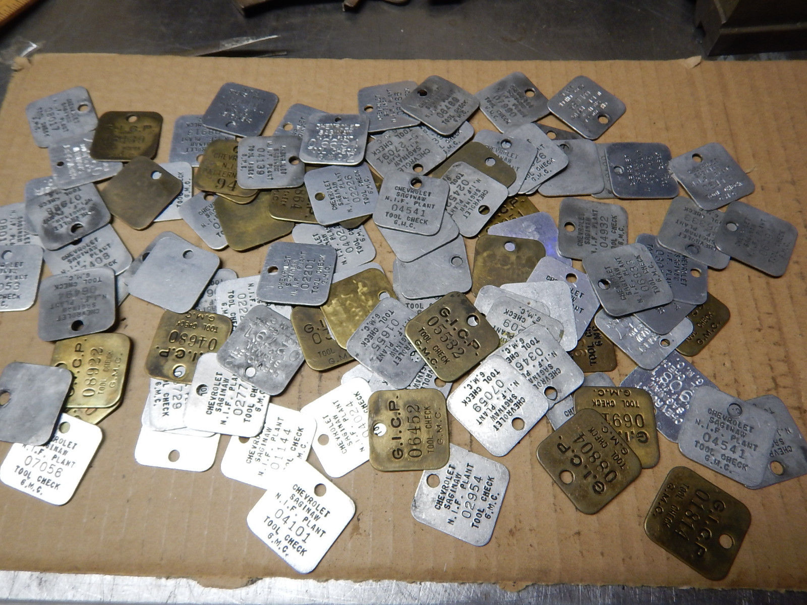 Title (ebay affiliate link): PILE OF GM CHEVROLET SAGINAW TOOL CHECK TAGS TOKENS TOOL CRIB G.M.C BRASS AND AL