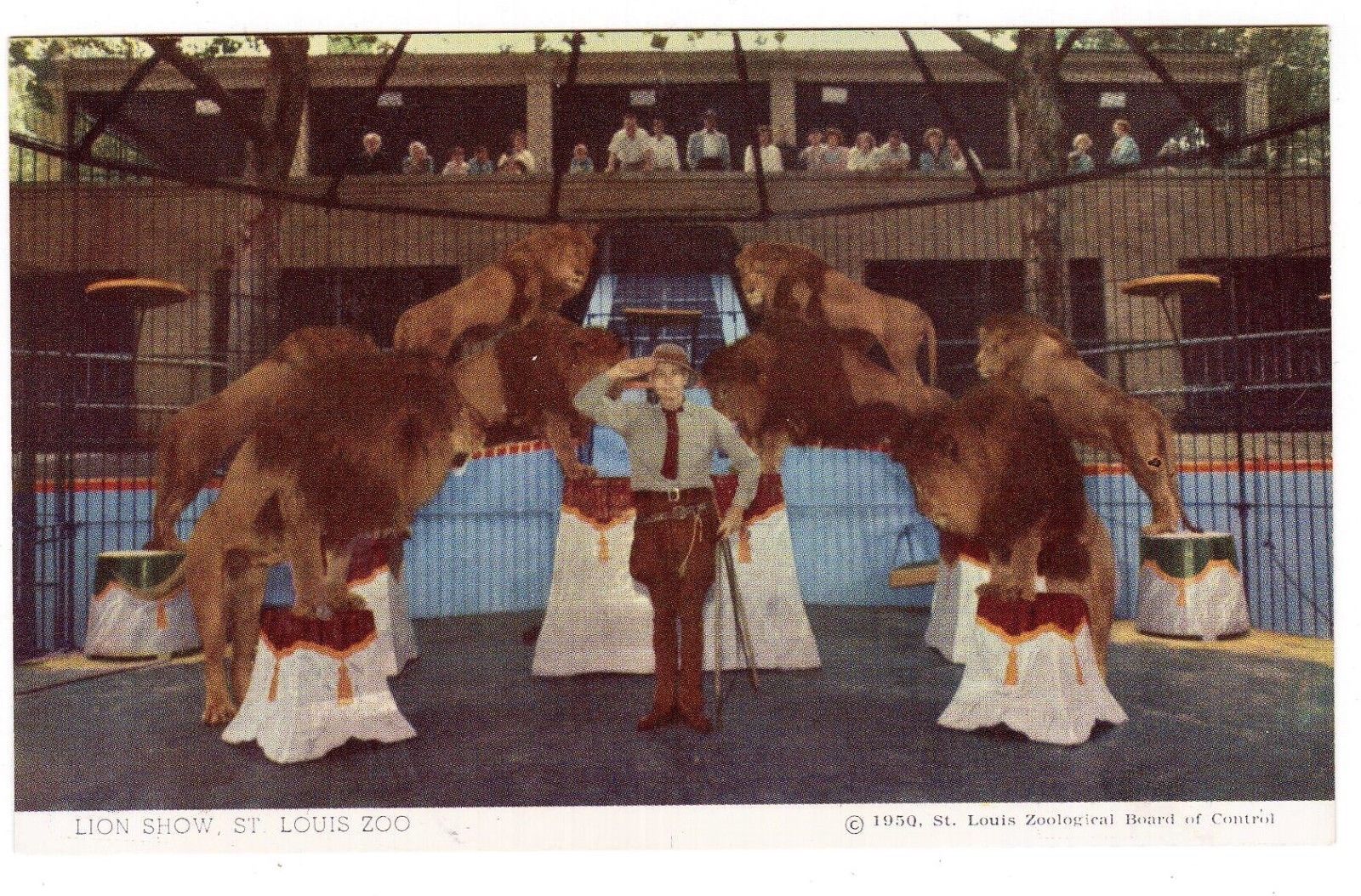 1950 LION SHOW AT ST. LOUIS ZOO MISSOURI POSTCARD
