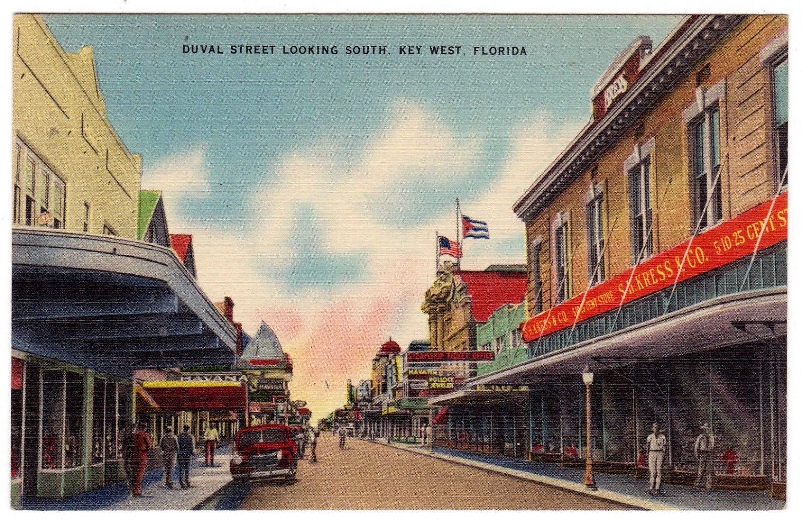 Title (ebay affiliate link): VINTAGE 1940''S DUVAL STREET LOOKING SOUTH KEY WEST FLORIDA POSTCARD