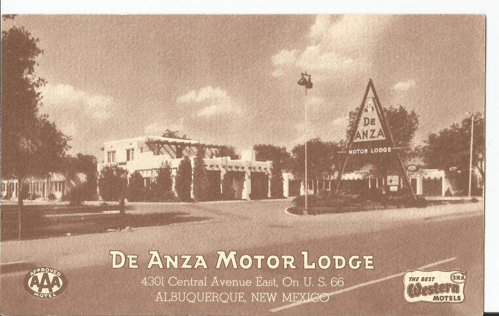 Title (ebay affiliate link): ALBUQUERQUE, NM New Mexico DE ANZA MOTOR LODGE ROUTE 66 c1950s Postcard