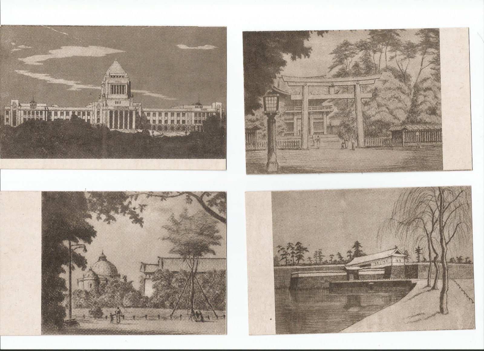 Title (ebay affiliate link): Lot of 6 Japanese postcards, sketch drawings, Published by Japanese Travel Burea