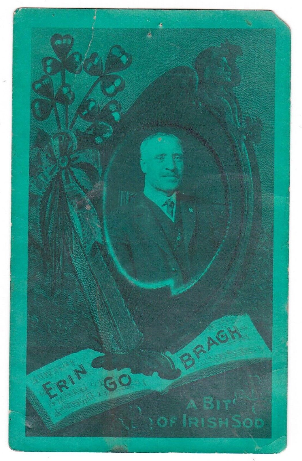 ANTIQUE 1910-1915 RPPC REAL PHOTO ERIN GO BRAGH A BIT OF IRISH SOD GREEN WASH