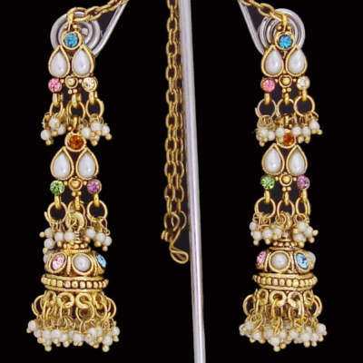 BEAUTIFUL~ANTIQUE FINISH~CZ~KUNDAN~DANGLE EARRINGS