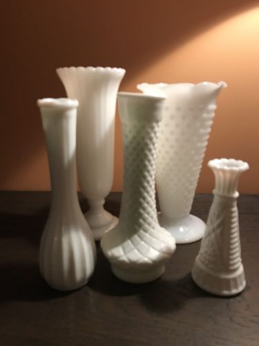 Title (ebay affiliate link): Vintage White Milk Glass Vases Lot Of 5 Vintage Wedding Decor Floral Arrangement