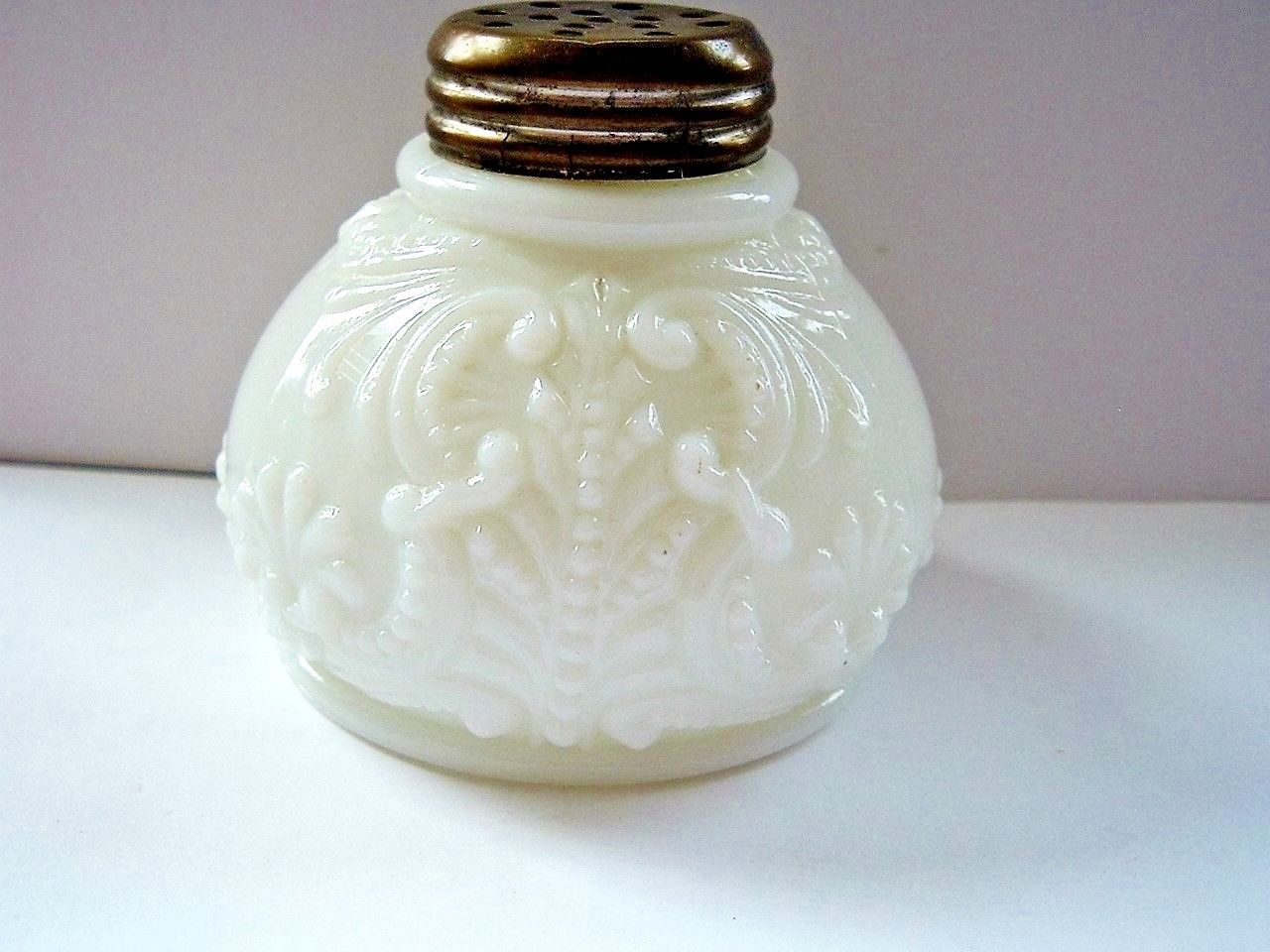 Title (ebay affiliate link): Art Milk Glass White Opaque Antique Victorian Salt Shaker Fan and Scroll