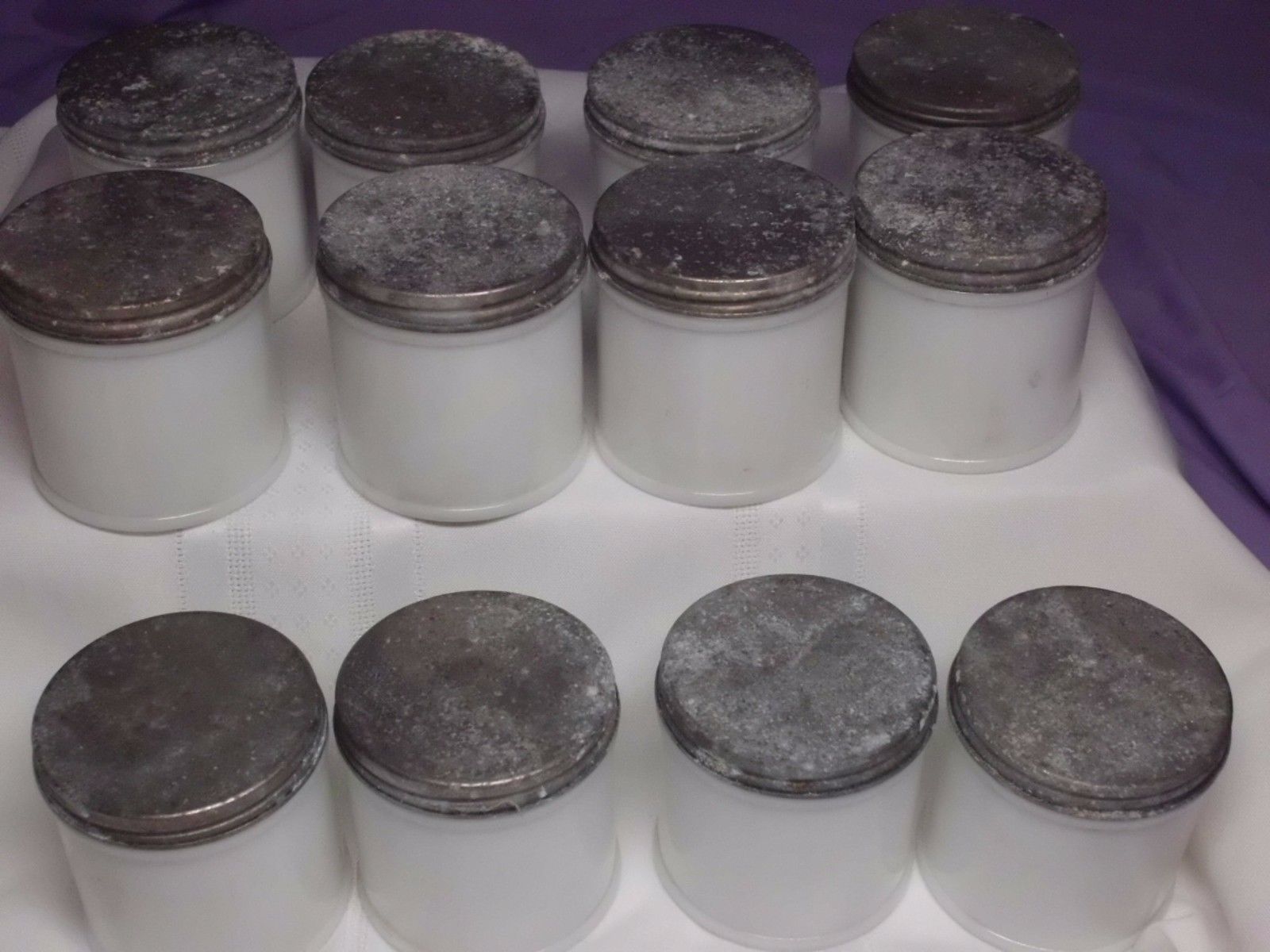 Title (ebay affiliate link): 12 VINTAGE MILK GLASS COSMETIC JAR 2 3/4 X 3 1/4 INCHES-COLD CREAM JAR (s)