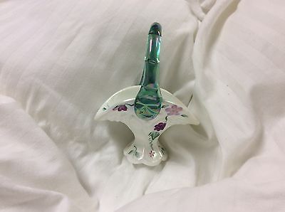 Fenton Art Milk Glass Green Iridescent Miniature Mini Basket w/Label