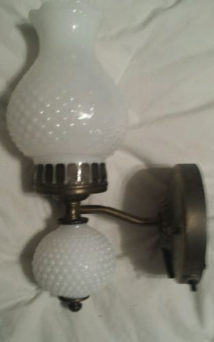 Vintage Wall Sconces Americana White Milk Glass Hobnail Lamp brass