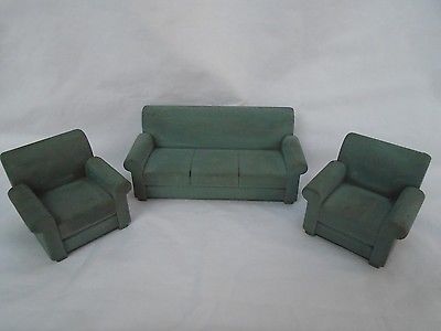 vintage antique primitive miniature doll house wood flocked couch chairs lot
