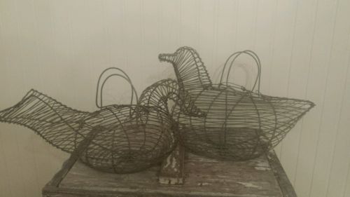 VINTAGE Lot of 1 WIRE CHICKEN/HEN EGG BASKET and 1 Duck? Gathering Primitive!
