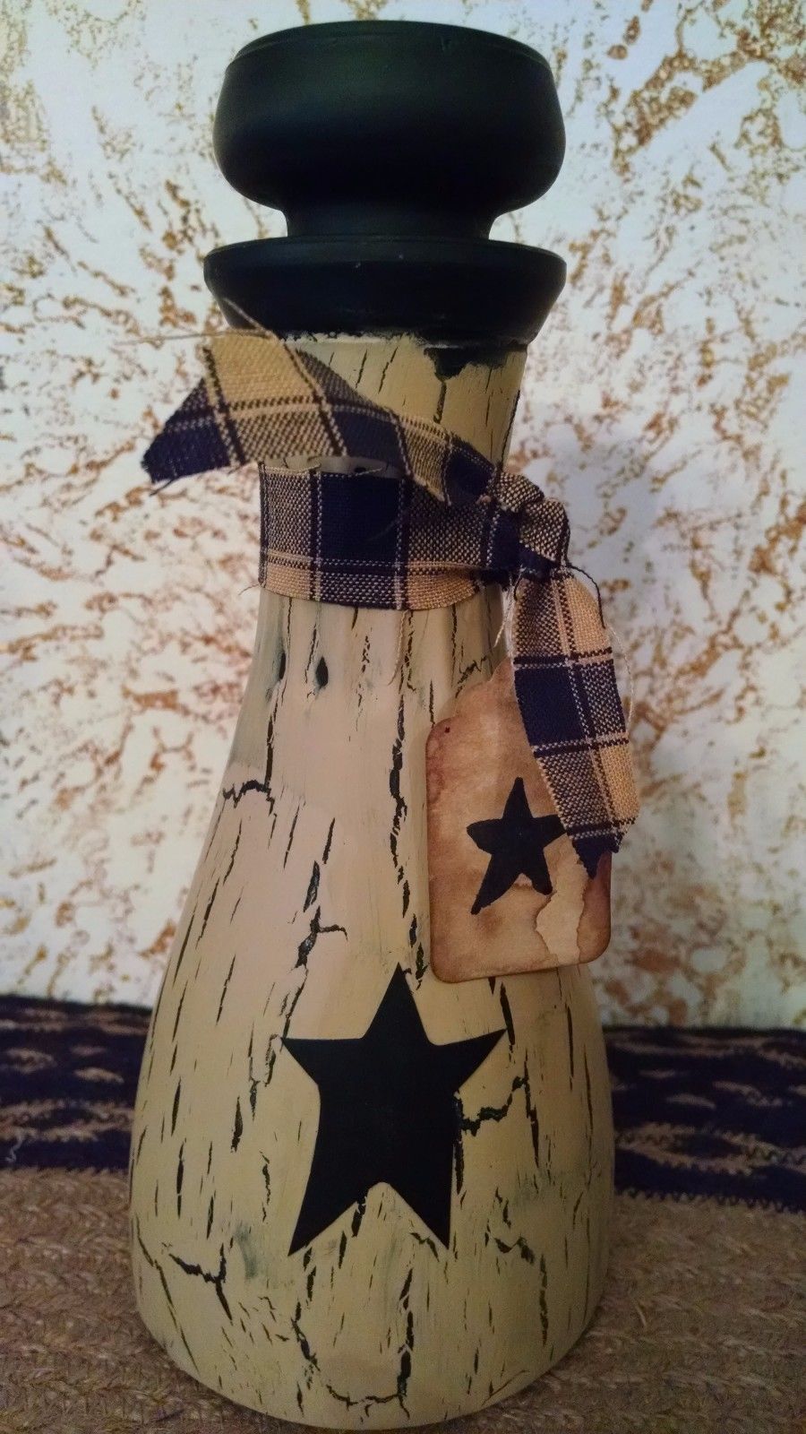 Title (ebay affiliate link): Primitive Crackled Decor Tan/Black Farmhouse Decor