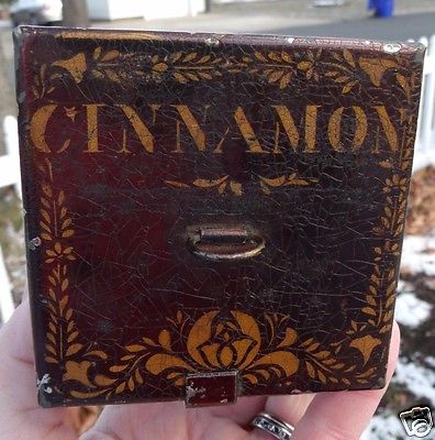 Title (ebay affiliate link): ANTIQUE JAPPENED SPICE TIN BOX CINNAMON KITCHEN VINTAGE OLD DECORATIVE