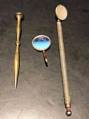 Antique / Vintage 1800''s Dental Mirror w/add''l mirror and solid brass probe