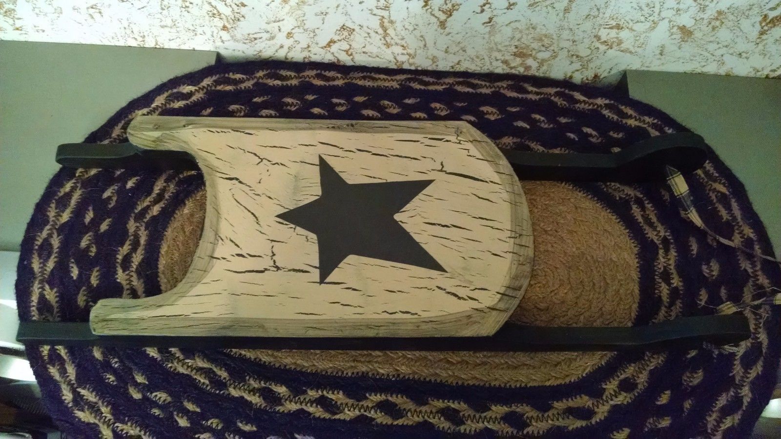 Title (ebay affiliate link): Primitive Crackled Sled Decor Tan/Black Farmhouse Decor