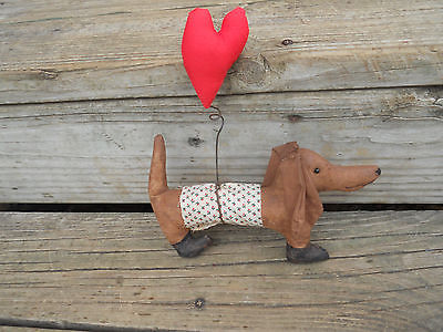 Primitive Valentines Day Grungy Brown Dachshund Dog Ornie Bowl Filler Decor