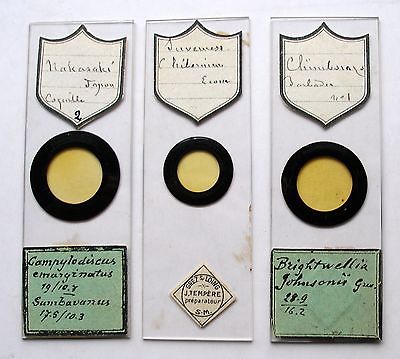 3 x Early TEMPERE, DIATOM STREW MICROSCOPE SLIDES, Various Locations