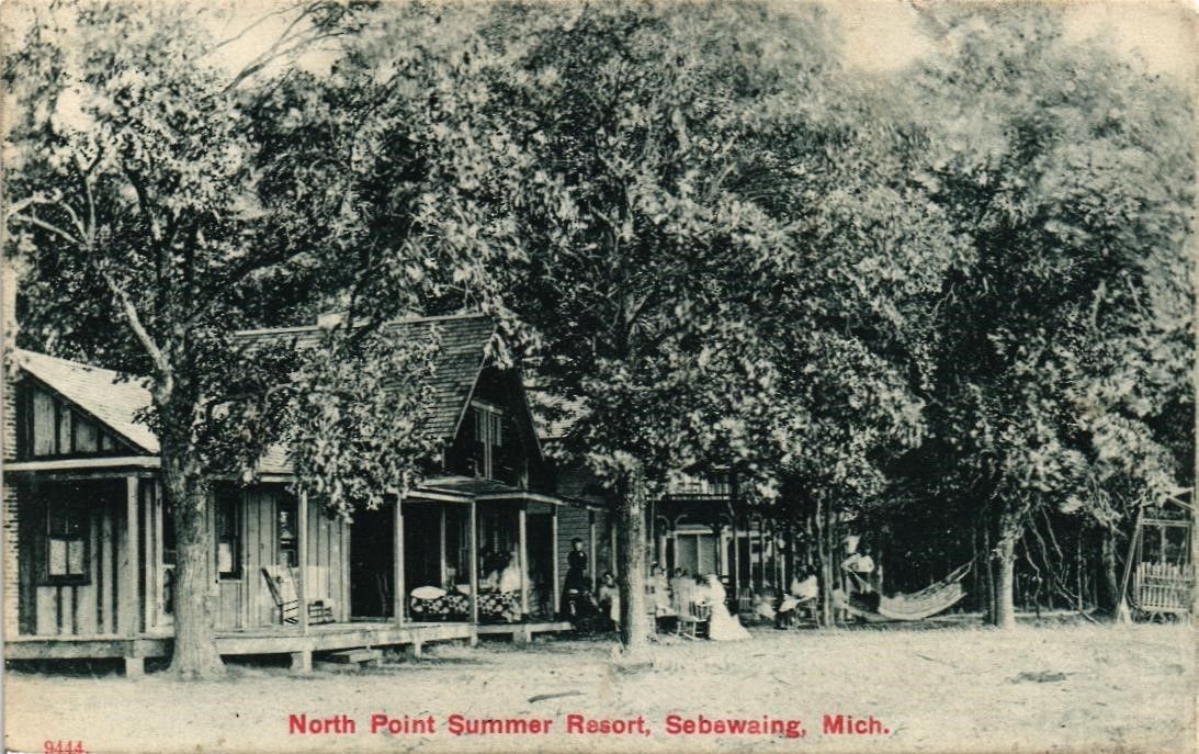 DR JIM STAMPS US NORTH POINT RESORT SEBEWAING MICHIGAN RPO POSTCARD 1908