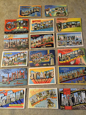 LARGE LETTER Linen Greetings Lot of 17 Postcards
