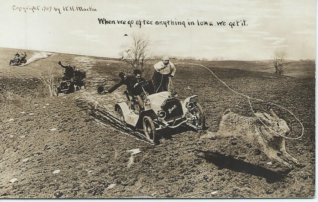 REAL PHOTO EXAGGERATION OF LASSOING A RABBIT IN IOWA