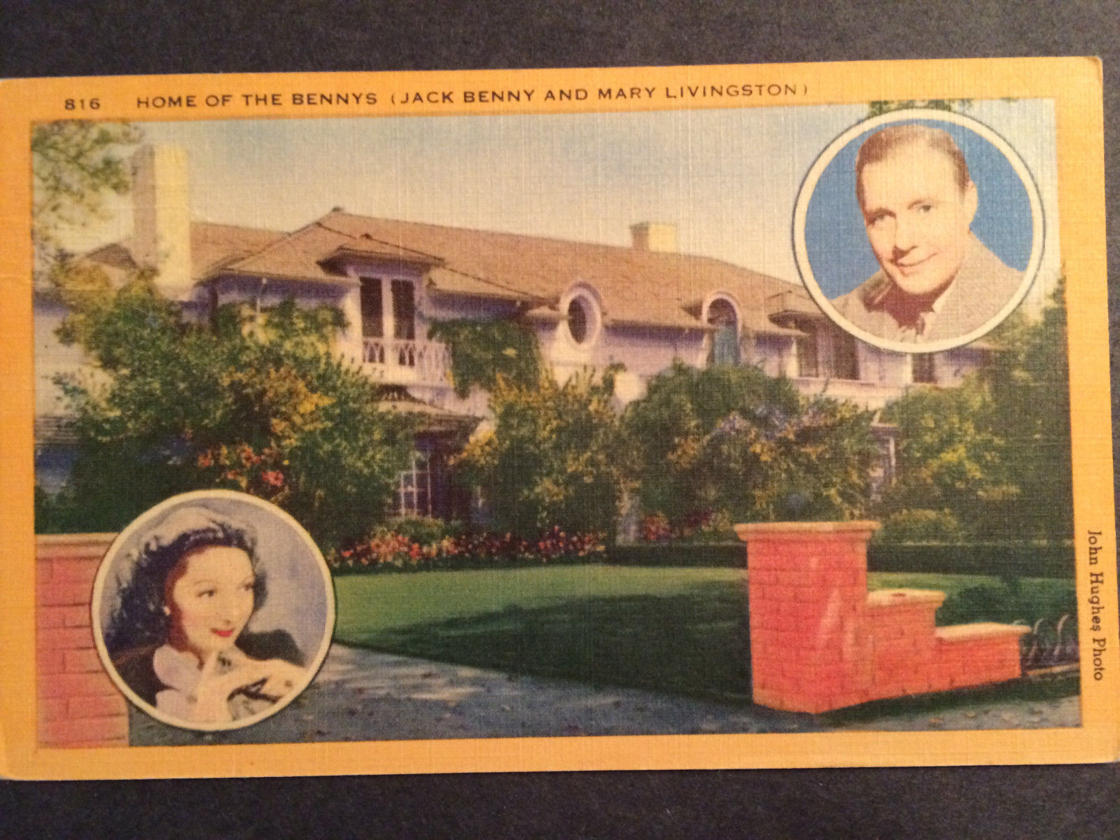 Title (ebay affiliate link): MOVIE STAR 3.JACK BENNY AND MARY LIVINGSTON CALIFORNIA HOME ON A COLOR POSTCARD