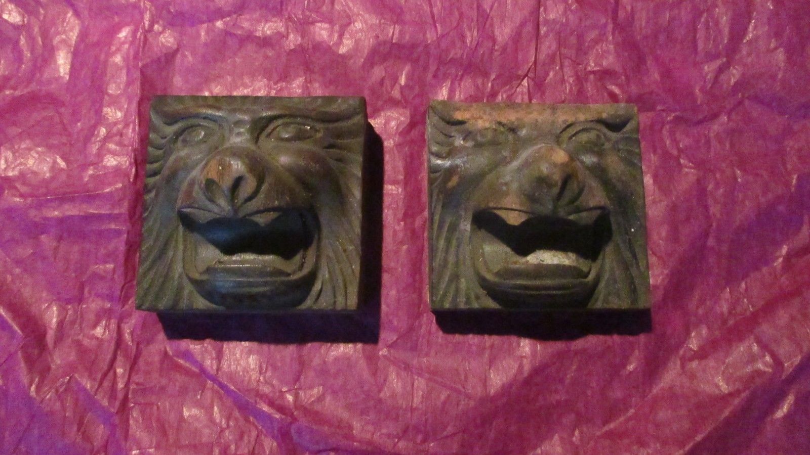 Pair of Vintage Victorian Carved Lion''s Heads