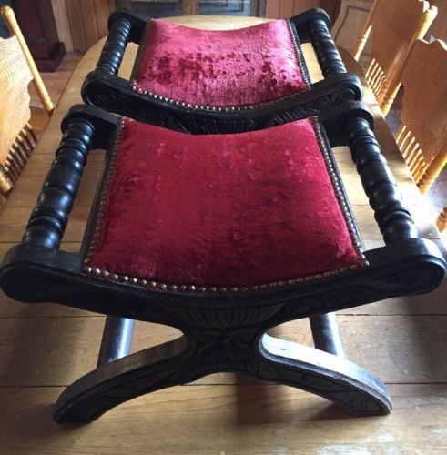 Title (ebay affiliate link): Vintage Pair Of Foot Stool Ottoman Foot Rest Red Velvet Like Fabric Wood