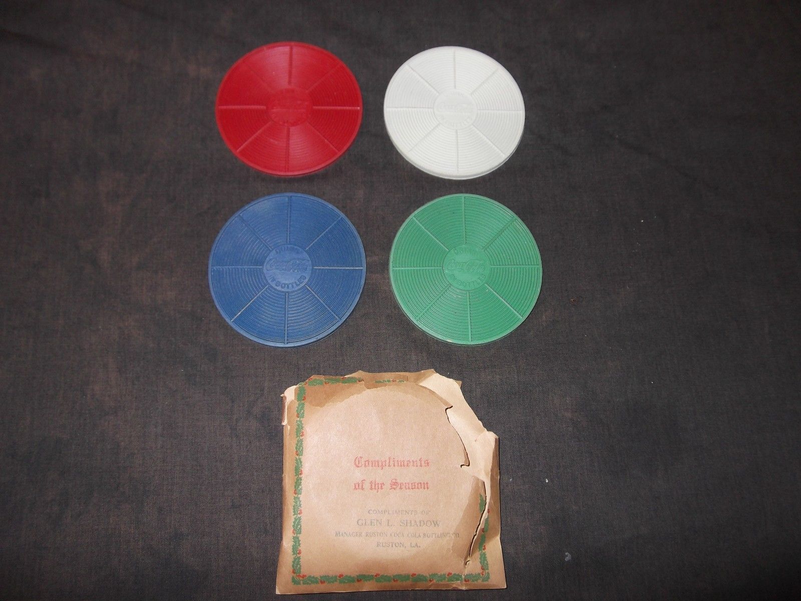 Coca Cola Coke 4 Drink Coasters 3 1/4" Inch Rubber Pads Ruston, LA Bottling Co