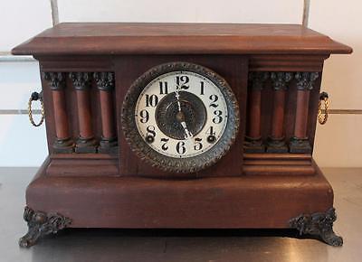 Title (ebay affiliate link): Antique Six Column Wood Mantel Clock w Excellent Detail - Mechanical Internals