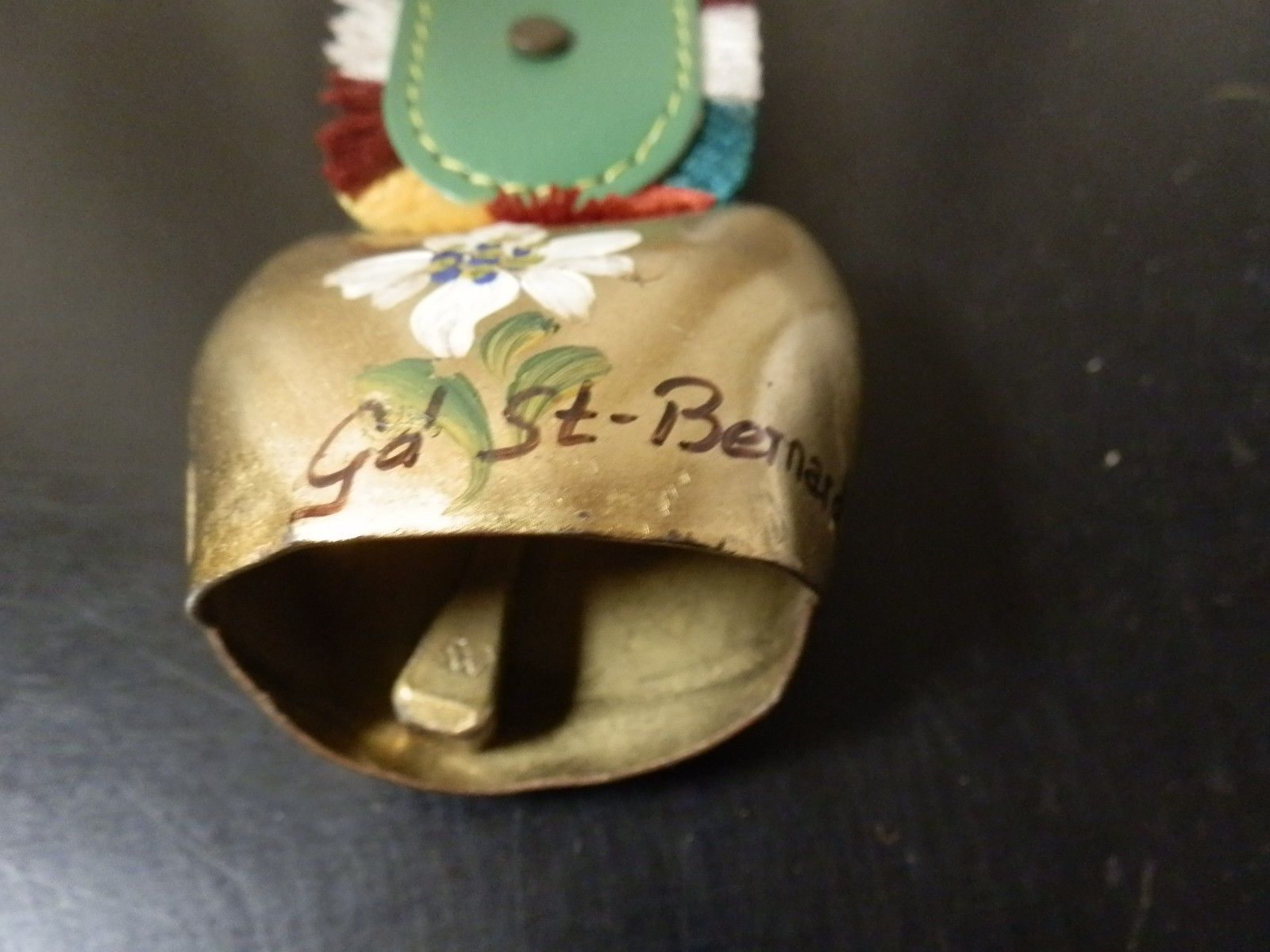 Title (ebay affiliate link): Hand Painted Swiss Cow Bell_Vintage_Switzerland with fringe Gal St-Bernard_metal