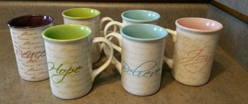 Title (ebay affiliate link): GIBSON EVERYDAY HOME JOY, BELIEVE, HOPE, PEACE SET OF 6 COFFEE MUG TEA CUP 10 OZ