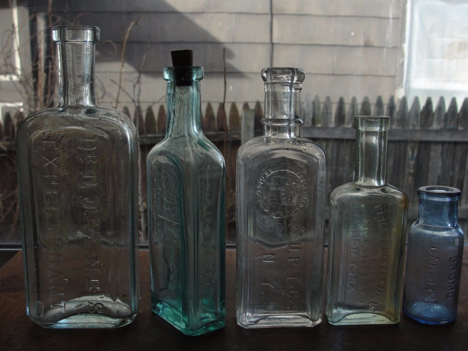 Title (ebay affiliate link): Bottle Lot Of 5 Mold Blown 1800s Antique Patent Medicine Bottles .