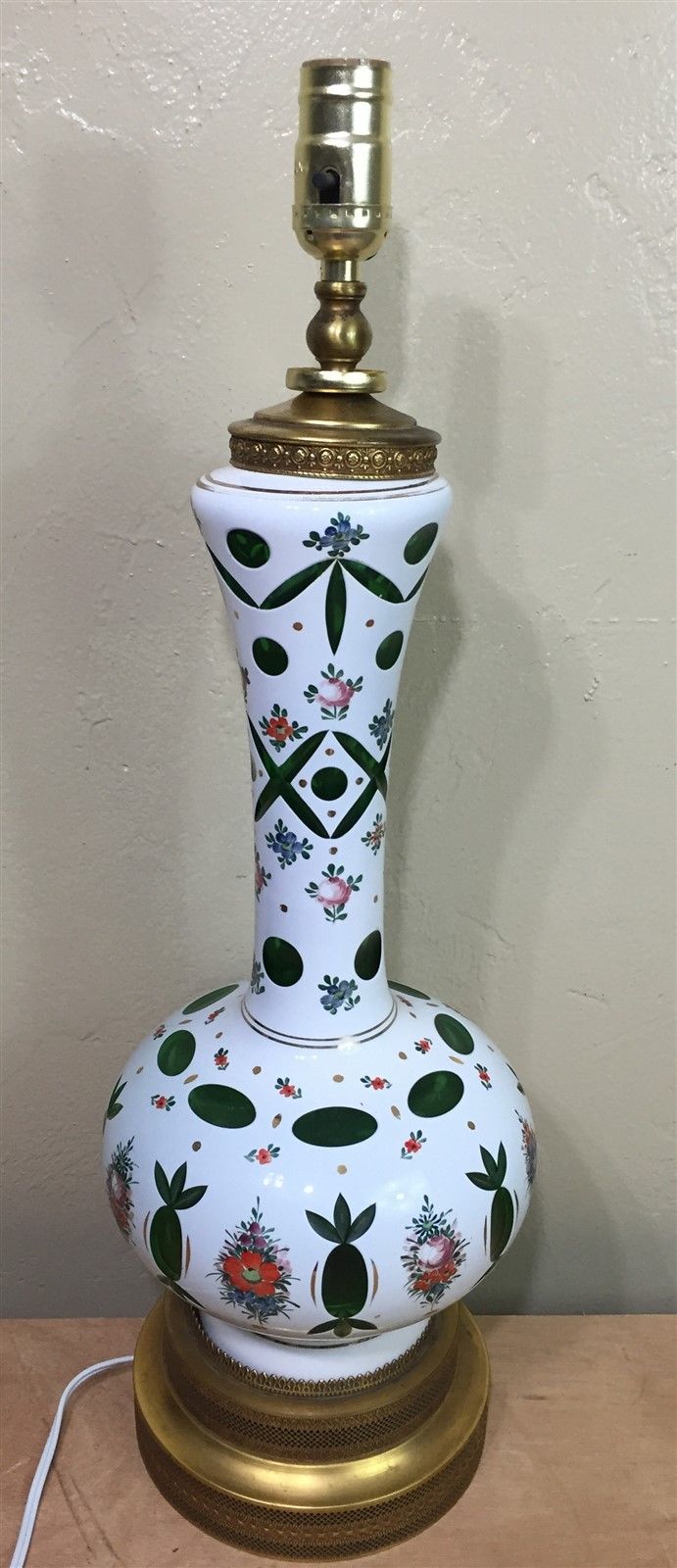 Title (ebay affiliate link): Antique Bohemian Czech Cased Cut Emerald Green Milk Glass Table Lamp