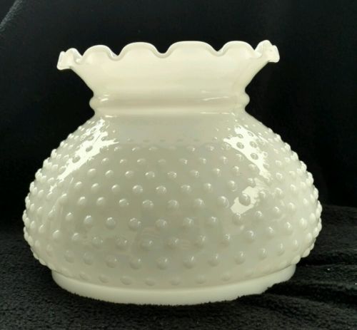 Title (ebay affiliate link): Vintage Antique Hobnail Milk Glass Fluted Oil Lamp Globe Shade Student 7" Fitter