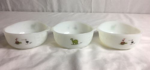 3 Fire King White Milk Glass BC Comics Jonathan Hart Handle Soup Cereal Bowls